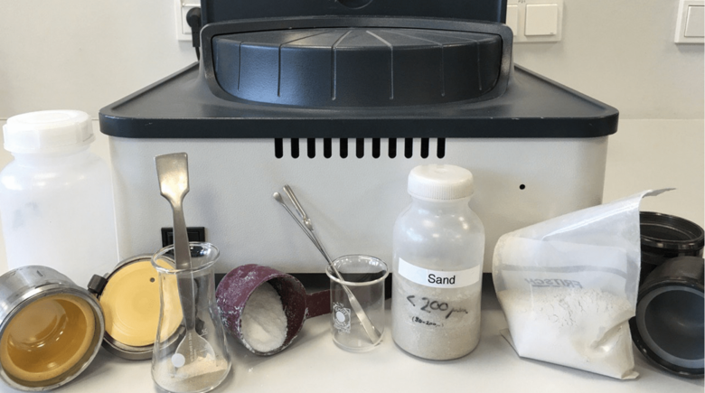 These abrasive materials keep slightly sticky sample material longer mobile and ensure therefore a corresponding larger final fineness due to higher “abrasive properties”. With a subsequent chemical analysis or extraction (the dissolving of active agents from a substance) the “abrasive assistants” remain in the filter and do not influence the analysis.