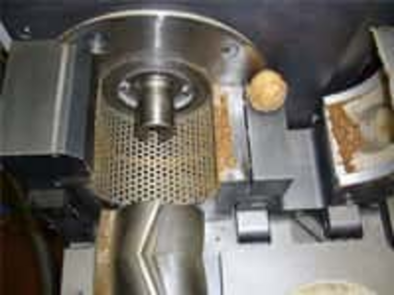 A standard funnel for long and bulk solids was chosen. On the one hand this funnel is easy to clean and, on the other hand the mill has the chance by slowly adding the nuts to comminute the material and discharge it from the cutting chamber. Otherwise if too much material is in the cutting chamber the material may get warmer and oil separates. Utilized was the 4 mm sieve cassette.