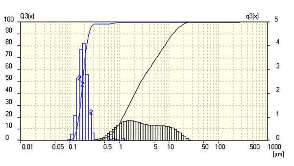 A very convincing result was achieved with x10 < 140 nm - x50 < 180 nm - x90 < 240 nm. These test results show that Nano-particles can easily be produced with Planetary Ball Mills from FRITSCH GmbH. An intermediate sample after 30 minutes with the results x10 < 180 nm - x50 < 250 nm and x90 < 580 nm showed that FRITSCH technology makes it possible to turn a “boulder” into Nano-particles in just 1 hour.