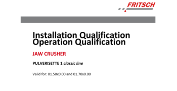 IQ/OQ documentation (questionnaire format - implementation not included); for the independent utilization for the support of instrument qualification in the quality management system for the Jaw Crushers PULVERISETTE 1 classic line, Model I and II.